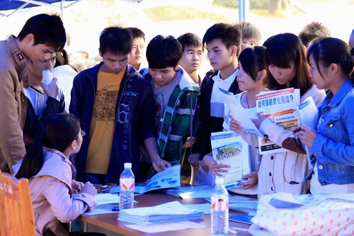 默契二:大多数毕业生对于在企业的职业发展空间及培训机会的需求也正是许多企业郑重承诺的。广东嘉华大酒店的招聘人员就斩钉截铁地告诉记者:“我们公司的岗位招聘之所以不限专业,是因为培训就是我们公司的最大福利,入职人员都要接受3个月的岗位强化培训,包括英语培训等。”而对于职业发展空间而言,柳钢集团的人力资源部李科长为毕业生介绍了三条不同的上升通道,给学生们吃了定心丸:“在柳钢,不论是博、硕研究生、本科生还是高职生,入职后都要从最一线的岗位开始做起,大家的平台都是一样的,对于未来,员工可根据自身情况,通过职务晋升、技术晋升、技能晋升这三种路径来满足提升个人职业发展空间的需求。”