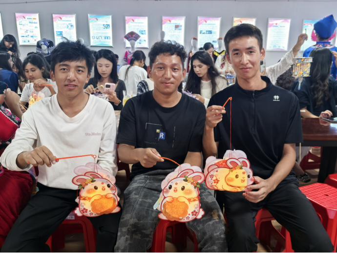 在DIY灯笼制作环节,来自维吾尔族的学生艾克热木·艾麦提说:“这是我第一次做灯笼,一开始觉得特别难,但是有汉族和藏族的小伙伴帮助我,我最后终于顺利的完成了,我很开心通过这次的活动认识到了很多不同民族的小伙伴。活动的压轴环节“舌尖上的团圆”中,同学们化身“月饼工匠”,揉面、包馅、压模,将思念与祝福裹进晶莹剔透的冰皮中。