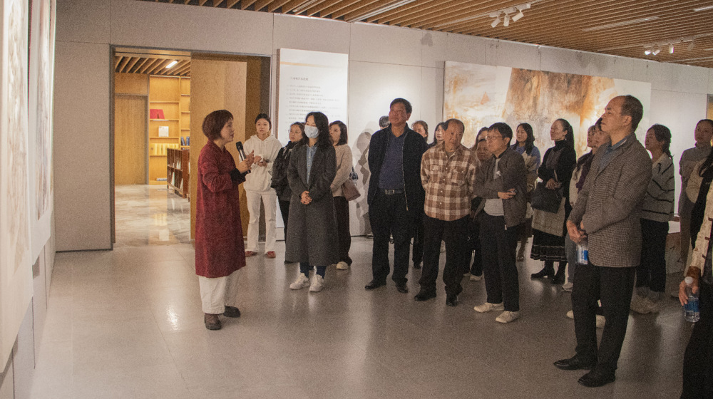 韦诗呐将此次画展巧妙地转化为深化课程育人与实践育人的重要课堂,专门邀请其授课的室内艺术设计专业学生近百人现场观展,并亲自为他们讲解。同学们近距离欣赏老师的匠心之作,感受每一笔色彩的碰撞、每一处线条的勾勒所蕴含的艺术魅力,聆听老师对艺术创作的深刻见解,仿佛在他们的心中种下了一颗艺术的种子,等待着在未来生根发芽。这种创新性的教学模式,打破了传统课堂的界限,让学生在真实的艺术语境中提升了审美素养和专业认知,更通过“教师艺术实践反哺课堂教学”的模式,生动诠释了学校“知行合一、工学结合”的办学理念。