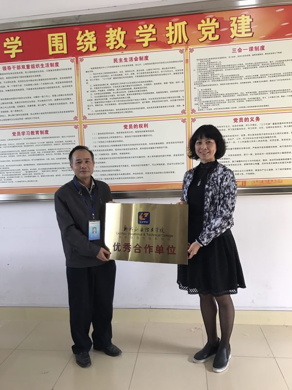 鞠副校长给北部湾职业技术学校颁发了优秀合作单位牌匾