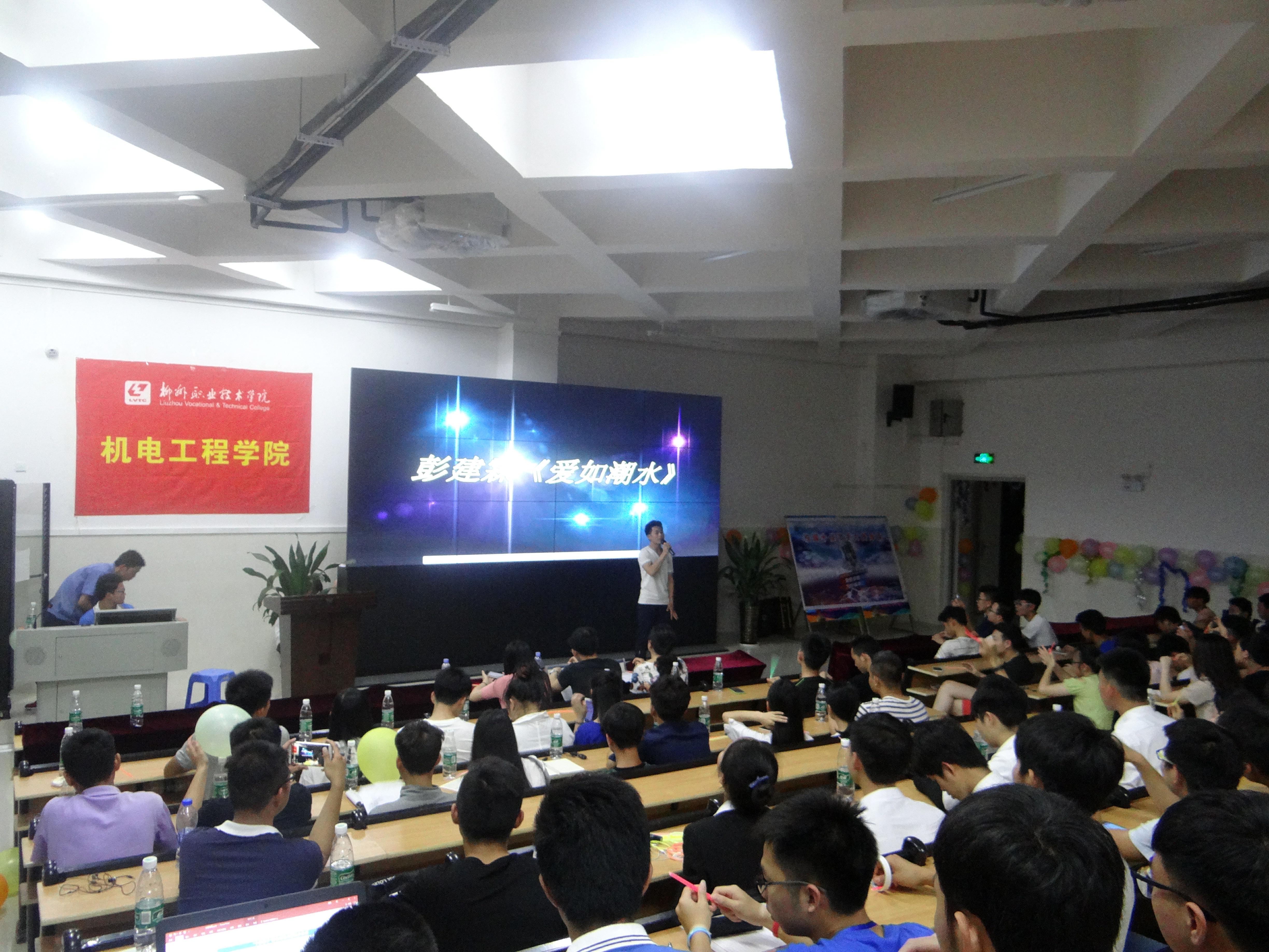 新闻网消息(文/机电工程学院 丘小维 图/机电工程学院 周育仟)这里有高昂的音乐、嘹亮的歌声,还有不败的青春气势,他们为音乐而燃烧,为梦想而努力,这是一场梦的盛宴。--5月12日晚7:00,柳州职业技术学院机电工程学院“十佳歌手”选拔赛在官塘校区T3D-401阶梯教室隆重举行,比赛开始前现场早已围满为选手助威的观众。