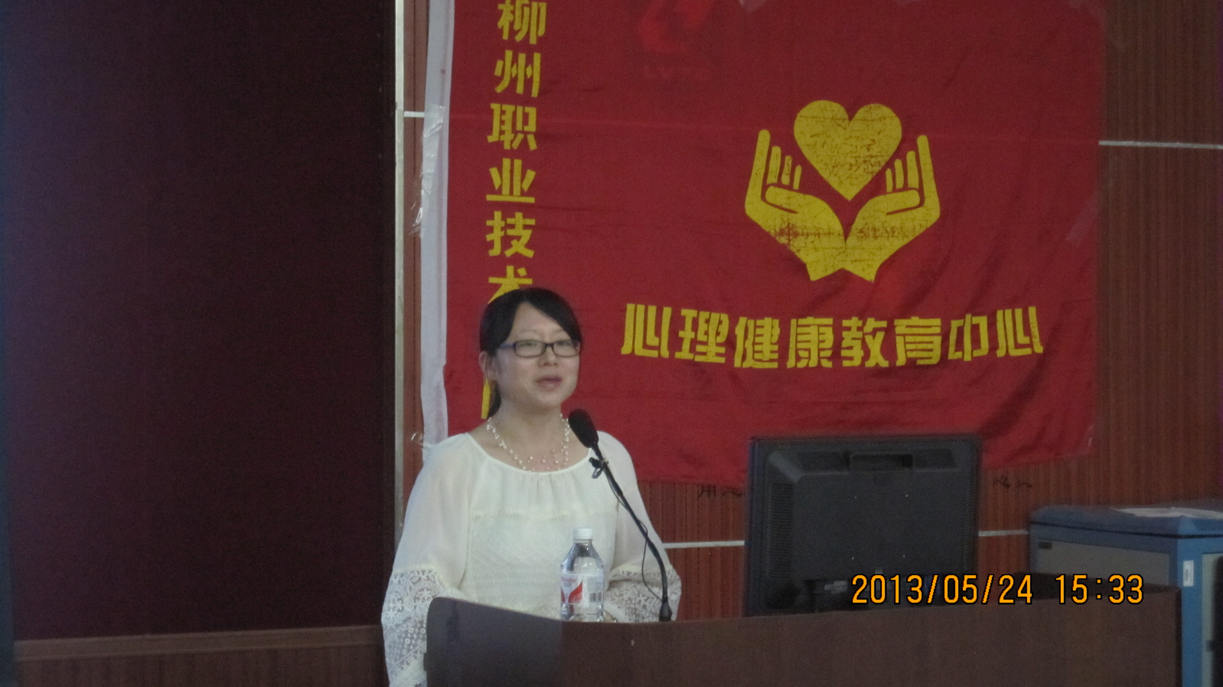 5月24日下午,柳州职业技术学院第十届心理健康宣传月之心理健康系列讲座在德馨楼101教室举行。我院党委宣传部(党委统战部)部长、国家二级心理咨询师左妮红教授为学院各班班长、心理委员以及阳光心理协会成员近百人做了一场题为《积极心态与幸福人生》的心理知识讲座。