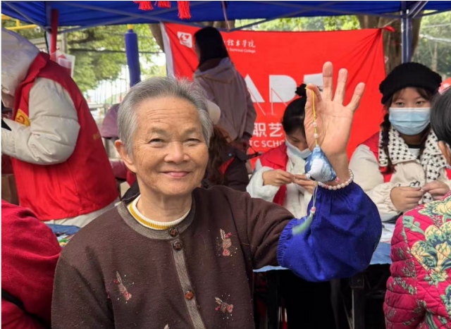 活动中,教师党员和手工艺协会的学生们向社区的居民们展示了各种手工艺品,如香囊、挂饰、折纸等,同时还进行了一场别开生面的手工艺体验活动。活动现场吸引了大批居民驻足观看,在场的志愿者们向居民们介绍了手工艺品的制作过程和手工艺文化的发展历程,并通过互动环节引导居民们亲身体验手工艺品的制作过程,并将居民们自己制作的作品赠送留作纪念。居民们表示希望今后能够常来开展活动。