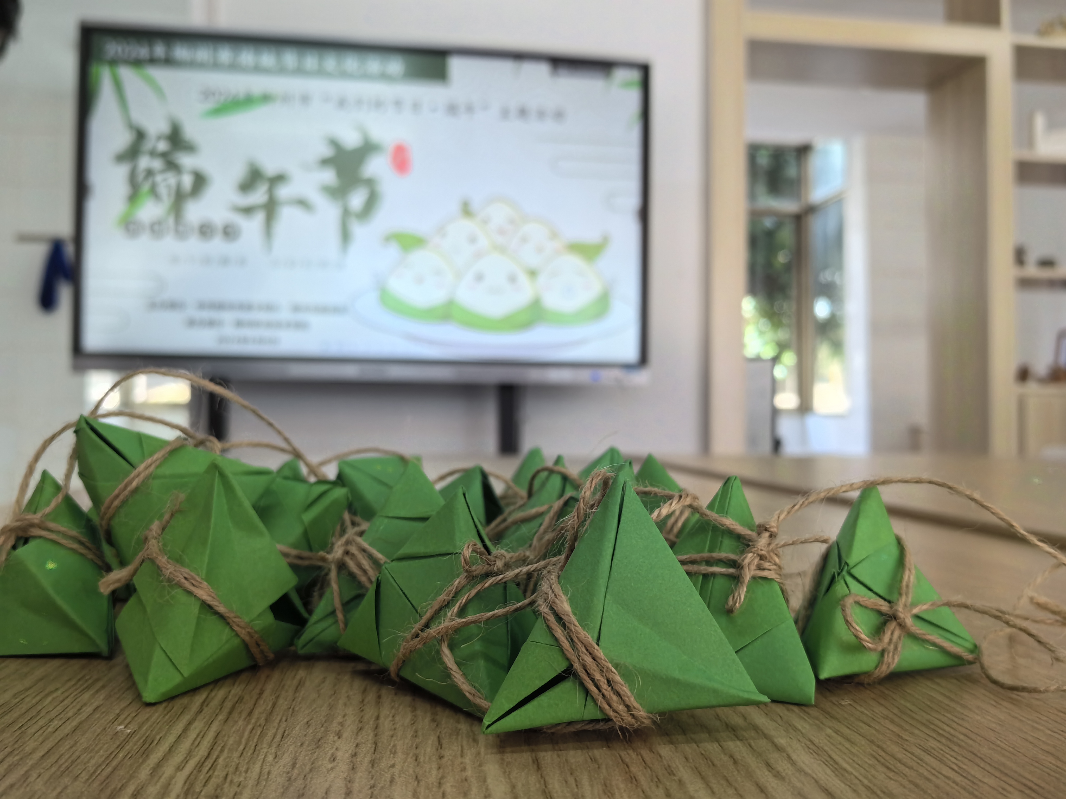 随后活动进入一个特别的手工艺术环节——折制立体纸粽子。在手工艺术协会同学经验丰富的纸艺指导下,学生们学习了如何将一张平平无奇的绿色卡纸,通过折叠、翻转等手法,逐步变成栩栩如生的立体粽子。这不仅是一种创意手工的实践,亦是对传统粽子文化的一次新颖诠释,使得大家从中找到乐趣并感受到传统文化的韵味,不仅锻炼了学生们的动手能力,更加深了他们对传统手工艺的认识和尊重。