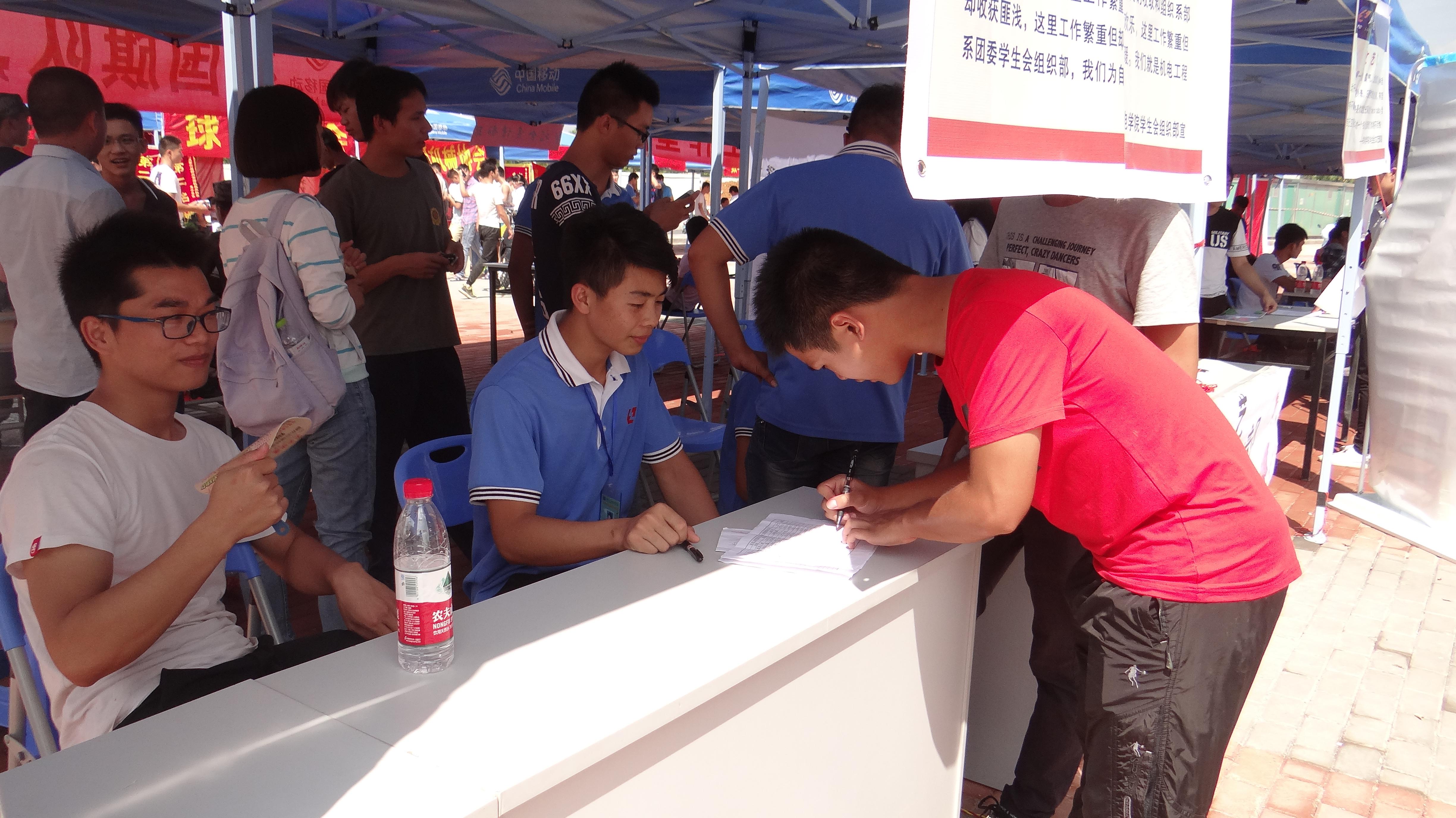 新闻网消息(文/机电学院 田文靖 图/机电学院)前两周各团学组织在社湾校区前两阶段纳新活动顺利完成后,本周“百团大战”在官塘校区宿舍楼下继续上演。