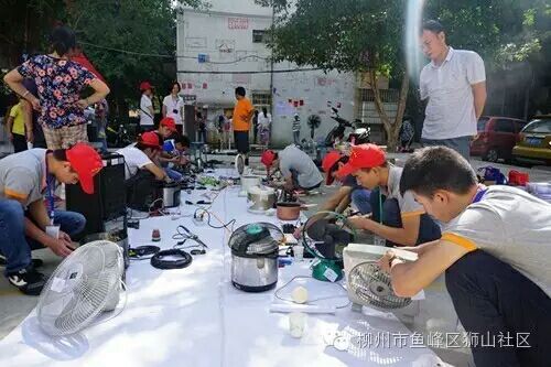 党课在同学们的热情参与和认真听讲中展开。在社区小广场上,家电维修部的同学们也正认真检测、维修着社区居民带来的问题家电,一双巧手,一颗感恩的心,家电维修部的同学们正努力践行着党课中所传达的“为人民服务”的宗旨。