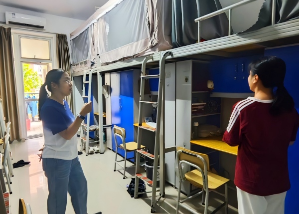 新闻网消息(文、图/财经与物流管理学院 刘玉玥)为切实保障国庆、中秋双节假期间学生宿舍的安全稳定,提高学生的安全防范意识,杜绝宿舍各类安全事故的发生,2025年9月29日下午,财经与物流管理学院党委副书记卢方带领全体辅导员深入学生宿舍,开展了一场全面、细致的节前安全隐患大排查行动,为同学们即将到来的假期生活筑起一道坚实的安全屏障。